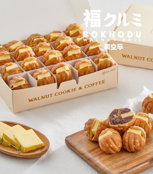韓国伝統のくるみ菓子「ホドゥガジャ」をベースにアレンジを加えた、くるみの香ばしさとしっとり生地が特徴の“くるみボール”と、