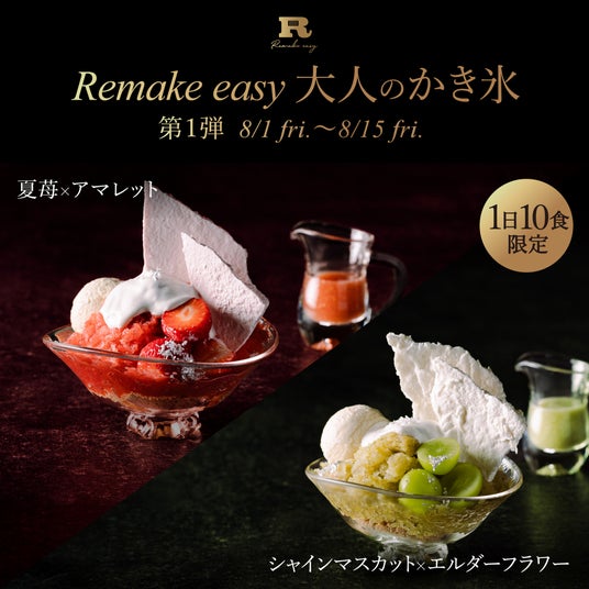 住所非公開の会員制パフェバー「Remake easy(リメイクイージー)」を運営するRemake easy株式会社 (東京都渋谷区、CEO:林巨樹、以下「Remake easy」)は、この夏、午後のひとときを涼やかに彩る季節限定の新メニュー『大人のかき氷』を2025年8月1日(金)から8月31日(日)15:00~17:00限定でご提供します。
