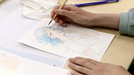 芦屋マキ氏の手元を見ながら、実際に水彩絵具をつかって線画へ着彩していきます。