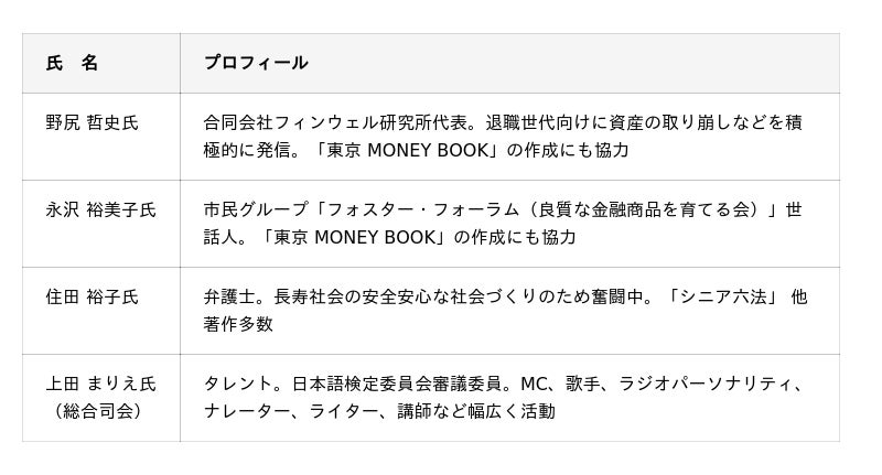 都が作成した「東京 MONEY BOOK」も活用しながら、著名な有識者に登壇いただくパネルディ