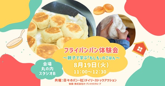 株式会社オープンハウスグループ(本社 東京都千代田区、代表取締役社長 荒井正昭、以下「当社」)は、当社が取り組む「耐災力」(大きな災害が起こった際に命を守る力)向上の取り組みにおける在宅避難啓蒙施策のひとつとして、株式会社ミンナ(本社 神奈川県横浜市、代表取締役 吉永麻衣子)が運営するパン教室「日々のパン」と一般社団法人デイリーストックアクション(本社 東京都世田谷区、代表理事 池上紗織、以下「DSA」)が共催する災害時の在宅避難について楽しく美味しく学べるイベント「フライパンパン体験会~親子で学ぶ「もしも」のごはん~」を後援いたします。本イベントは、8月19日(火)に、ABC Cooking Studio 丸の内スタジオBにて開催し、本日より、一般のみなさまからの参加者を募集いたします。