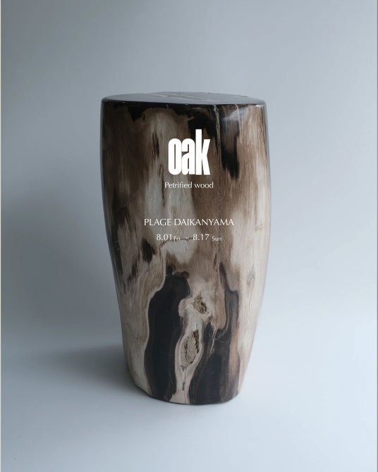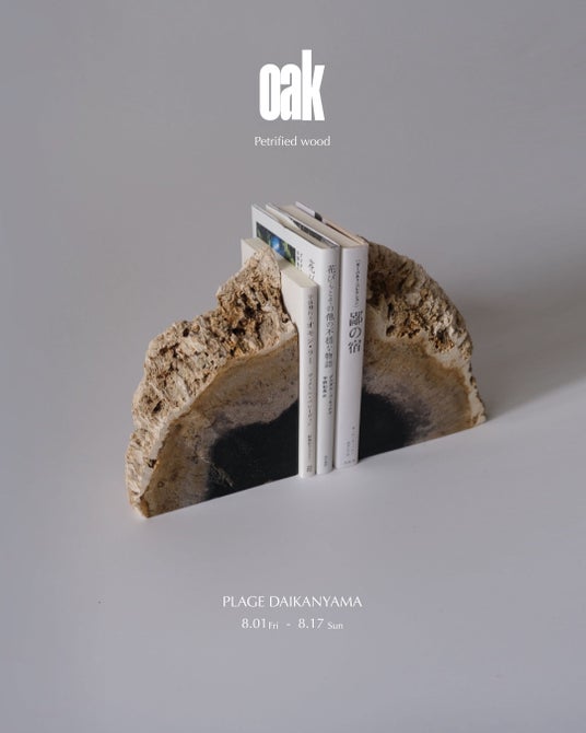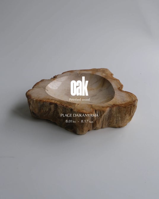 また、立川にお店を構える日本初の珪化木インテリア専門店「OAK Petrified Wood(オーク)」のPOPUPも同時開催。長い年月をかけて石のように変化した植物の化石の一種である珪化木を使用した、アクセサリートレーやブックエンド、スツールなどが勢ぞろいします。自然が作り出す一点物のデザインを、実際にお手に取ってご覧いただける貴重な機会となります。ぜひ、この機会にPlage代官山店にお立ち寄りください。