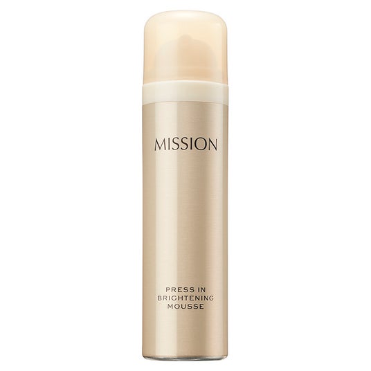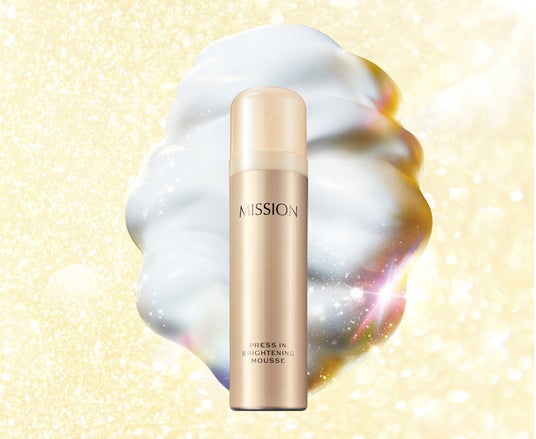 『ミッション プレスイン ブライトニング ムース※1(医薬部外品)』は、透明感美肌へ導くムース状美容液です。有効成分※3と美容成分※5を含んだもっちり濃密な炭酸※6泡が、肌の細かい凹凸のすみずみまで広がりムラなく密着。手のひらで炭酸※6泡を押し込むようにプレスインすると、肌表面にモイストシールドを形成してうるおいを密封し、肌の水分、油分を補って保ちながら、しっとりとしたツヤと弾力ハリ感を与えます。