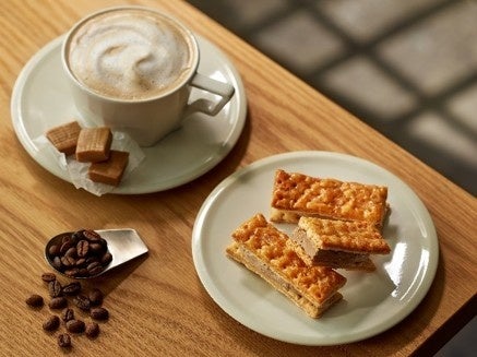 ショコラ生地にほんのりコーヒーをきかせたクッキーで、ホワイトミルクのチョコレートをサンド。サクッと軽やかな口あたりとともに、まるでショコララテのようなチョコレートの濃厚な甘さとミルクのクリーミーな余韻が広がる、癒しの味わいが魅力です。