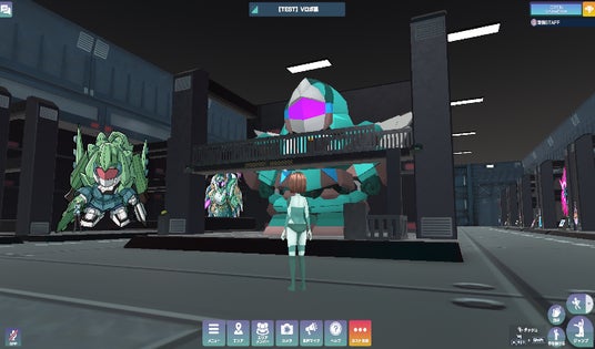 メタバース展の会場は、『Vロボ』233体(2025年7月現在)を、バーチャル格納庫に並べ展示したミュージアム的な雰囲気での展開を目指しています。