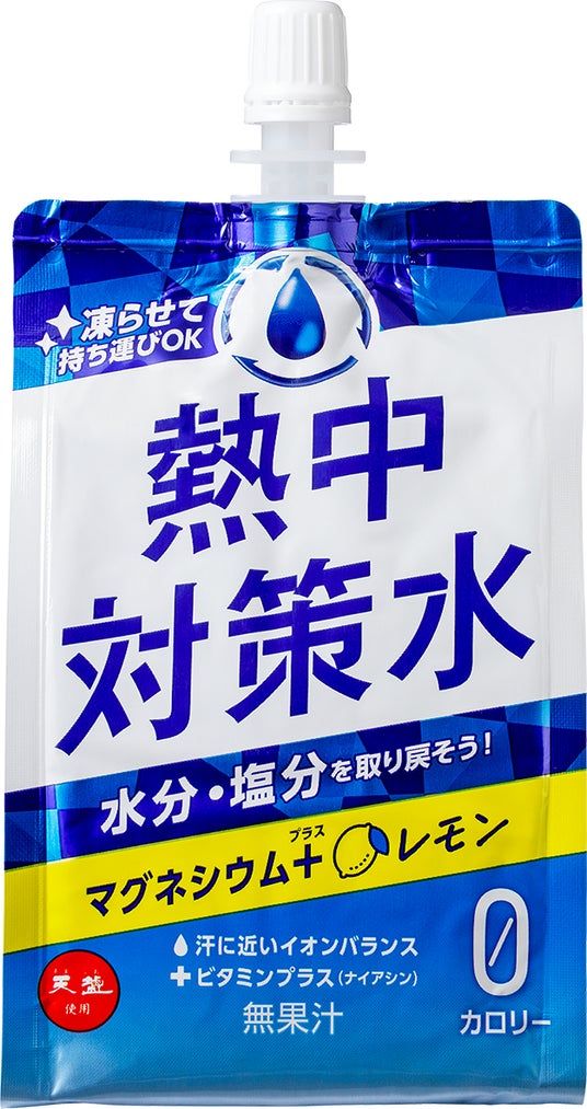 暑い中、開会式に参加している選手に、汗としてカラダの外にでた水分と塩分を取り戻す飲料「熱中対策水 パウチ レモン 300g」を提供させていただきます。当日は、汗を多量にかくことが予想されますので、熱中対策水で失った水分と塩分を美味しく取り戻してください。