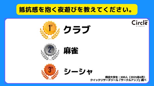 抵抗を感じる夜遊びとして、クラブ48%、麻雀45%、シーシャ35%が上位に挙がりました。