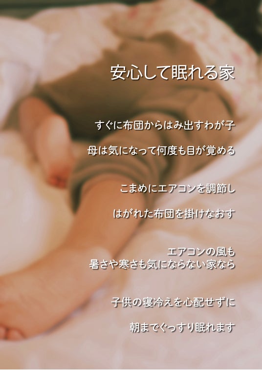 赤ちゃんは体温調節が苦手で肌も敏感ですが、風のないやさしい空気環境なら、エアコンの温度も風量も気になりません。