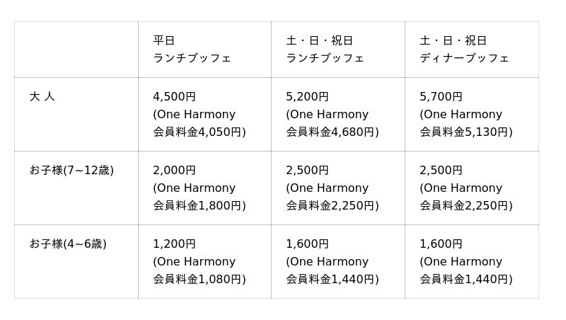 【料 金】消費税・サービス料込/3歳以下は無料