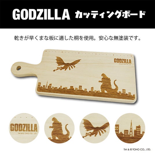 日本が誇る特撮怪獣「ゴジラ」が、木製カッティングボードになって登場。