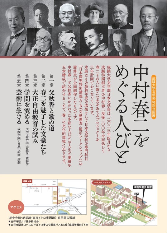 成蹊大学(東京都武蔵野市、学長:森雄一)は、文学部日本文学科主催の特別企画展「中村春二をめぐる人びと」を、2025年8月2日(土)から11月23日(日)まで、成蹊学園史料館(東京都武蔵野市)にて開催します。