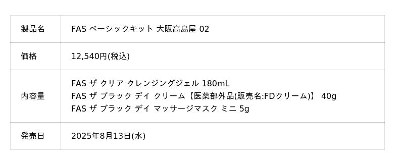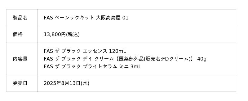 今回のPOP UPでは、上半期に数多くのアワードを受賞した「FAS ザ ブラック デイ クリーム*³」を含む2種類の特別キットをご用意しています。この機会にぜひお立ち寄りくださいませ。