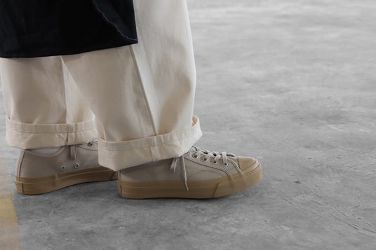 1970年代に生産していた運動靴をルーツとしたモデル。ベーシックなパターンに、運動靴に必要な強度を持たせるための鳩目補強やあて布とサイドステッチといった当時のディテールを再現した一足。25FWシーズンでは“BEIGE”が新色として登場。