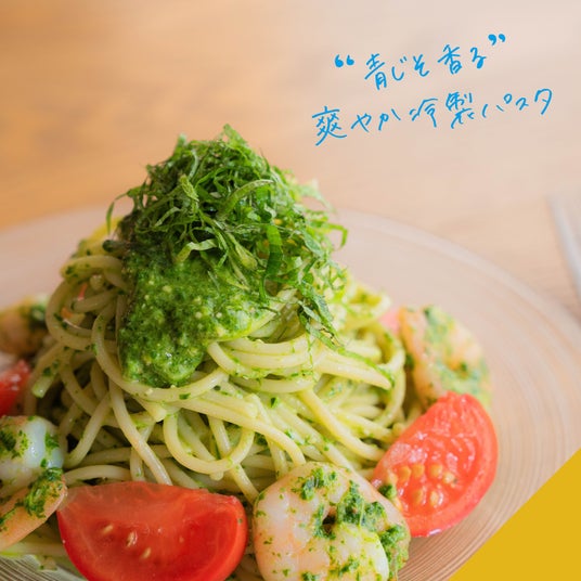 ・青じそ香る、爽やか冷製パスタ海老とアメーラトマトの冷製青じそジェノベーゼ