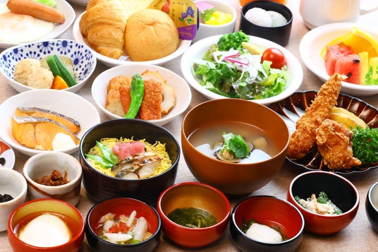 朝食は、ご当地料理「焼き鯖ちらし寿司」と「宍道湖産しじみの味噌汁」や旬の食材を使った小鉢横丁をはじめ約40種類の和洋バイキングをご用意しております。