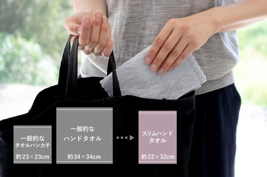 “ハンカチ以上、ハンドタオル未満”の絶妙サイズ「スリムハンドタオル」