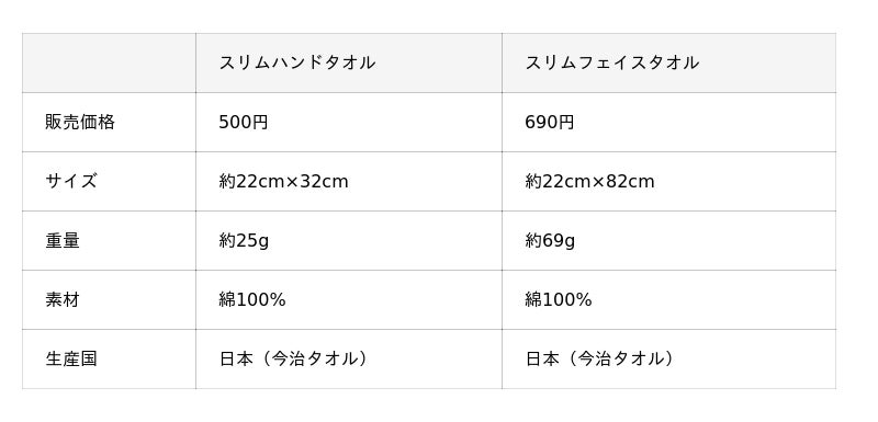 「slim towel(スリムタオル)」 スリムハンドタオル(画像左) スリムフェイスタオル(画像右)