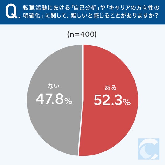 52.3%と半数以上の方が、転職活動における「自己分析」や「キャリアの方向性の明確化」に関して、難しいと感じることが「ある」と回答しています。