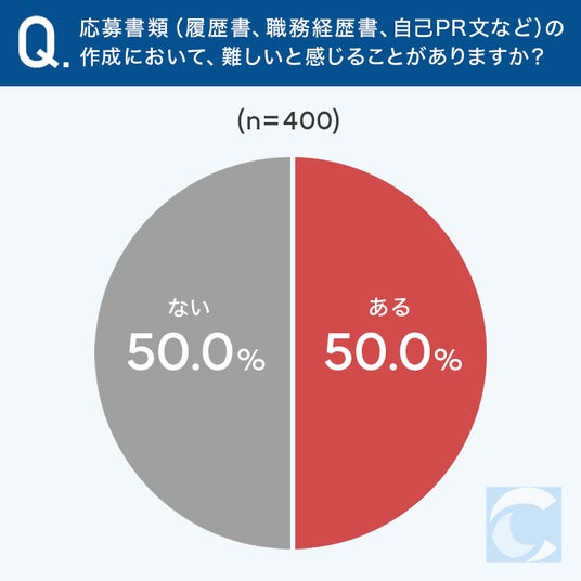 半数の方が応募書類の作成において、難しいと感じることが「ある」と回答しています。