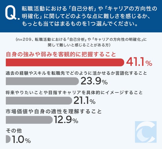 質問1:転職活動における「自己分析」や「キャリアの方向性の明確化」に関して、難しいと感じることがありますか?