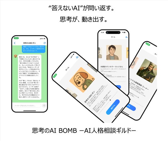 戦略コンサル・PEファンド出身の開発者が設計した”考えさせるAI”チャットアプリ「思考のAI BOMBーAI人格相談ギルドー」(iOS版/android版)が合同会社旅のしおりから正式リリース。本アプリは、“答えないAI”だから思考習慣が身に付く。ユーザーの問いにただ答えるのではなく、ユーザーに問い返し、新たな視点を提示し、構造を見せ、思考を動かすよう設計されている。