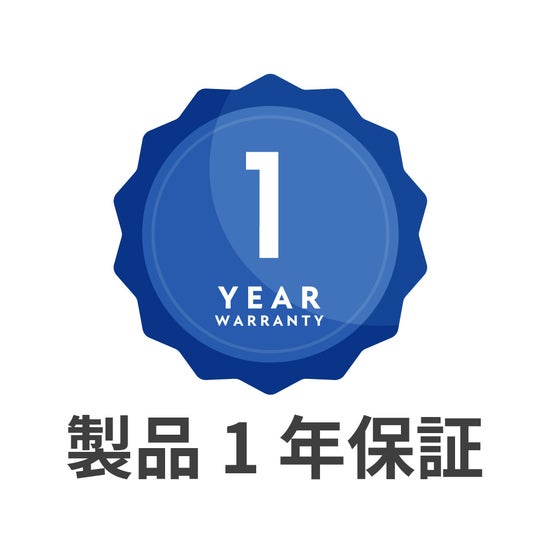 安心の1年保証本製品は1年保証がございます。ご使用中に万が一不具合などが発生した場合、保証期間内であれば無償で交換を保証いたします。お客様が安心して長くお使いいただける製品品質と併せて、サポート体制にも力を入れております。