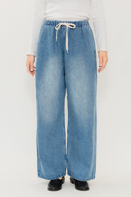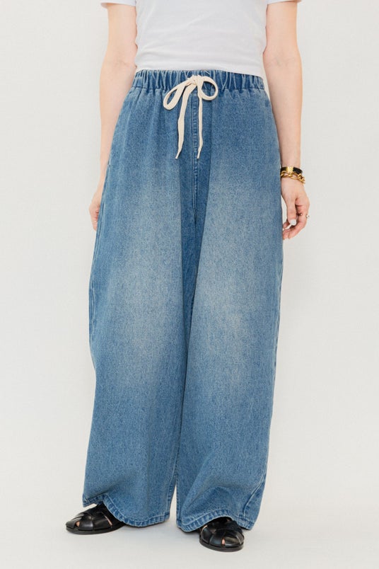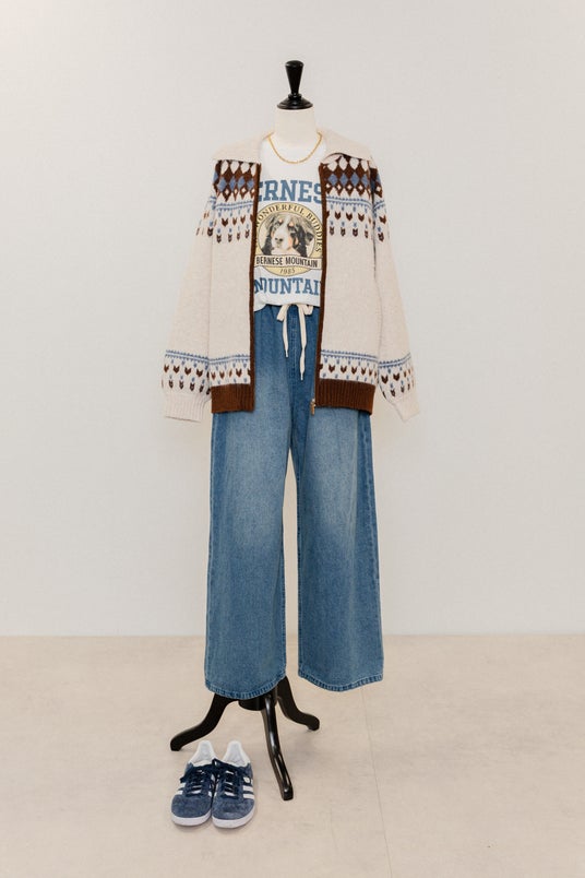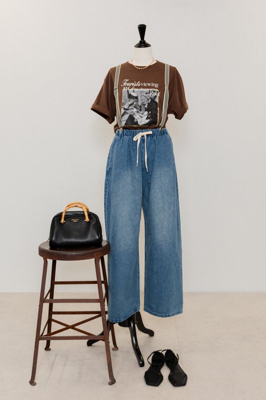 真冬にもイージーデニムパンツ。ゆったりとしたワイドシルエットで安心感があり気楽にはけるのが嬉しい。薄すぎず暑すぎない生地感で、一年を通してずっと使えます。