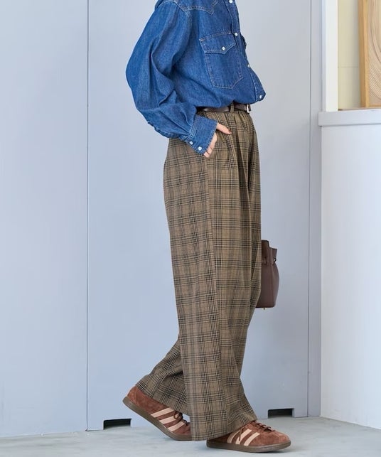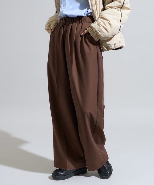 脚をきれいに見せるシルエットにもこだわり、タック入りの太すぎないストレートラインで、さまざまなスタイリングに馴染みやすいシルエット。