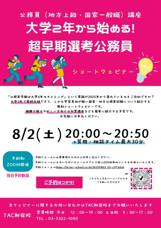 【TAC公務員】「大学2年から始める!超早期選考公務員セミナー」を8/2(土)に開催