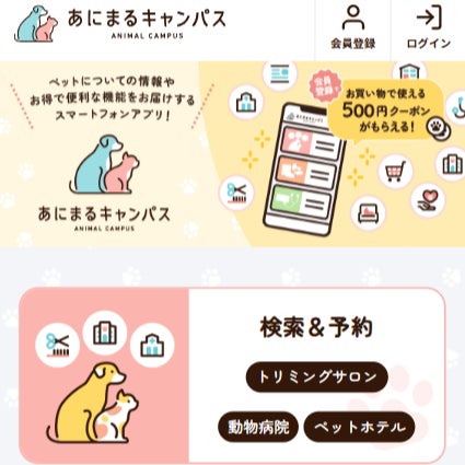 あにまるキャンパスは、ペットに関する情報や便利なお得な機能を提供するスマートフォンアプリです。