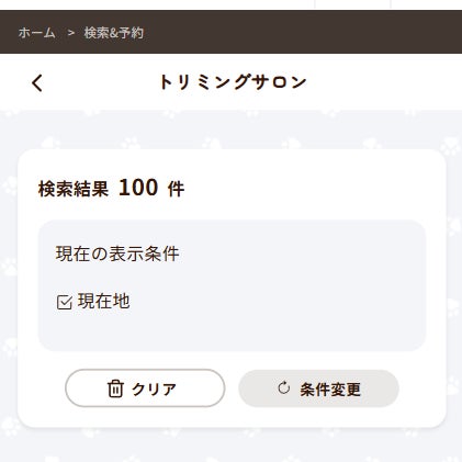 お近くのトリミングサロンや動物病院、ペットホテルなどを予約することができます。
