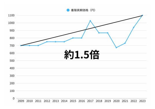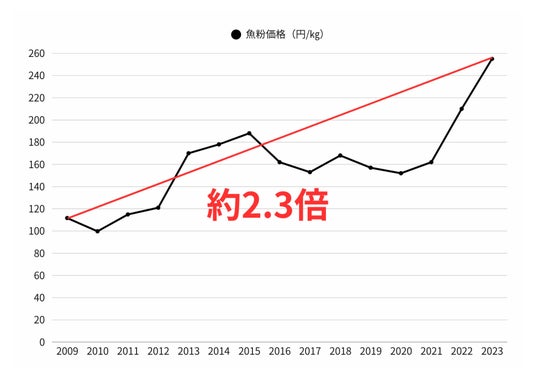 餌代の一部の高騰率(2.3倍)※ふく成調べ