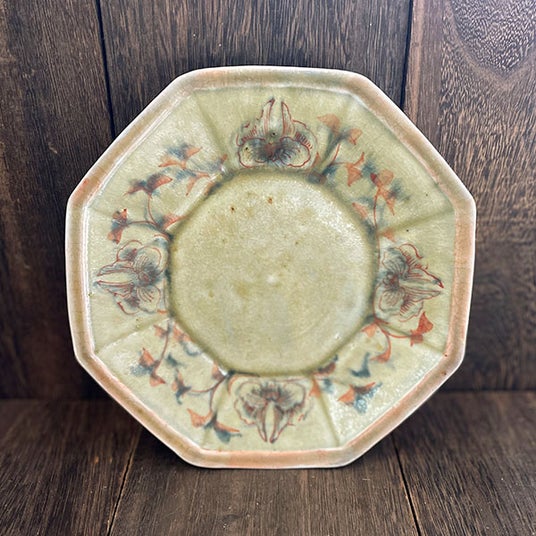 花柄のケーキ皿です。シンプルなトーストをのせていただいて、華やかな朝食に。