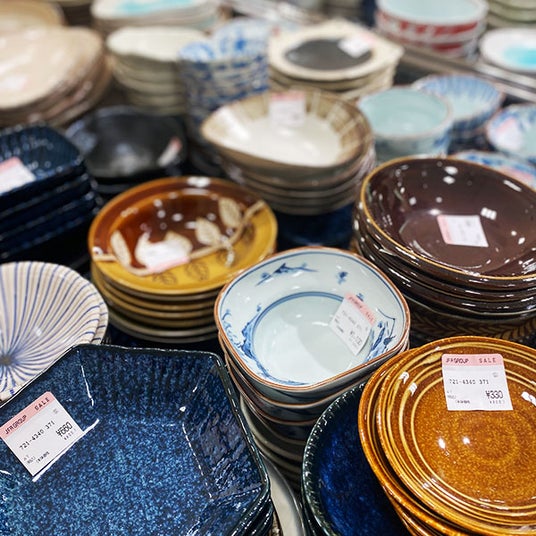 美濃焼、九谷焼、波佐見焼など有名産地のやきものをはじめ、大人気の現品処分市など掘り出しものも盛りだくさん。更に個性豊かな作家ものやオシャレでリーズナブルなふだん使いの器も取り揃え、バラエティー豊かに!