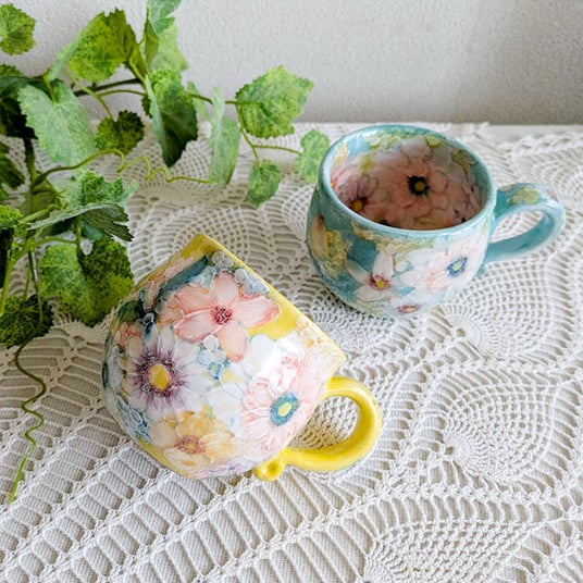 コロンとした形の花柄マグカップです。自分へのご褒美やプレゼントにもおすすめです。