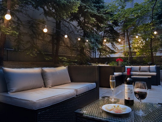 札幌の夏祭りを楽しんだあとは、ホテル中庭でビールとワインを