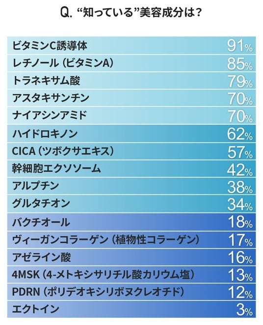 ■“知っている”美容成分の1位は「ビタミンC誘導体」“取り入れたい成分”の1位は幹細胞