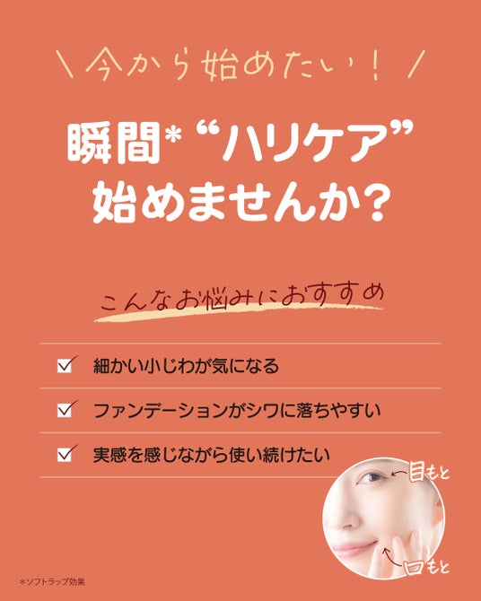顔印象が変わる目もとや口もとに瞬間*、ピンっとハリ!