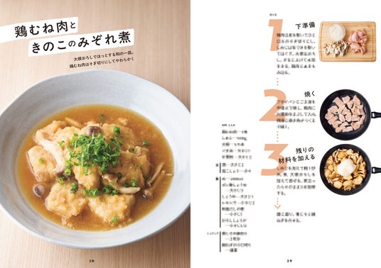 第2章ではごはんがどんどんすすむメインおかずを31品大公開!ガツンとパンチのきいた絶品タンドリーチキンや、やさしい味の鶏むね肉ときのこのみぞれ煮など幅広いメニューを集めました。