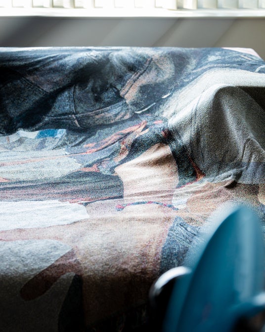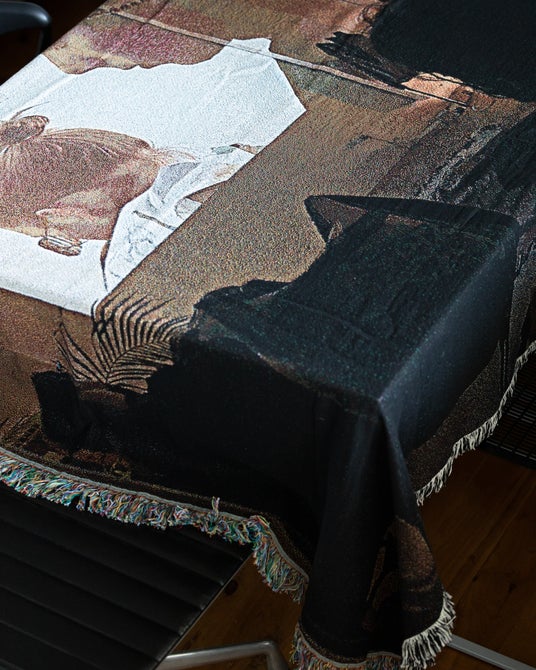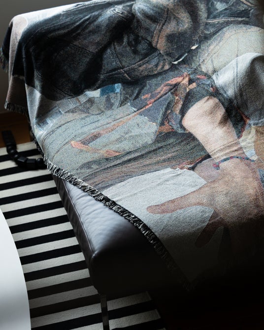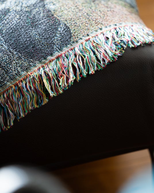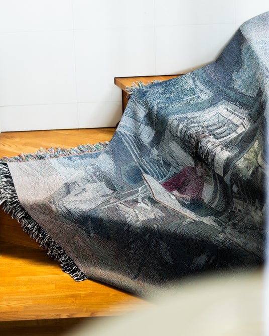 〈Blanket〉のデザインには、建築物や街並み、日常の一瞬を切り取った風景が描かれており、それらを絵画のような美しさと繊細さをもつゴブラン織りで表現。まるでアート作品のような存在感を放ちます。 ブランケットとしてはもちろん、ベッドスプレッドやラグとしても使用可能。その用途の自由さも、〈BLESS〉らしい魅力のひとつです。