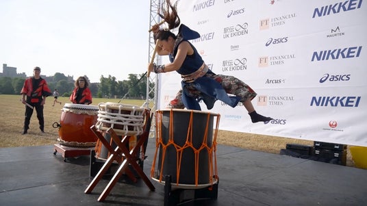 UK駅伝の開会式で演奏する、SemiLattice所属の太鼓パフォーマー・後藤麻衣