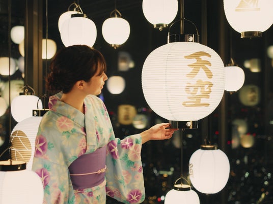 会場をやさしく照らすのは、この夏に新規設置された SHIBUYA SKY オリジナル全方位照明 INNER NEBULASと連動して多彩な色に変化する提灯装飾。色と光がひとびとの夢と呼応するように、静かな空間にリズムとぬくもりを添えます。書くことで夢に輪郭が生まれ、飾ることで未来の風景になる。渋谷の空に、あなたの夢を灯してみてください。