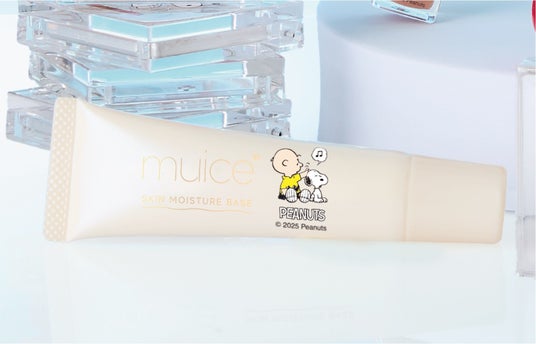 “かゆいところに手が届く”アイテムを展開し、手に取りやすい価格と機能性の高さから、幅広い世代に愛されている「muice」。そんな「muice」の人気アイテムと、世代問わず世界中で愛され続けている「PEANUTS」との夢のコラボレーションが実現!ふんわり発色が人気の「ぽわんチーク」からは、今回のコラボでしか手に入らない「PN01 コットンメロリーナ」「PN02 ベビメロピンク」の2色が登場。「PN01 コットンメロリーナ」は、ピンクとオレンジをMIXさせた絶妙なニュアンスカラーで血色感を演出します。ブルベさんはオレンジメイクに、イエベさんはピンクメイクに使うのがおすすめです!「PN02 ベビメロピンク」は、既存色「03 ばぶみピンク」 よりもさらに青みがかった、明るいトーンのピンクカラー。多幸感×透明感の両方を叶えた、あどけない赤ちゃんほっぺが完成します。しっとりツヤ肌を叶える「うるみハイライター」には、人気カラー「02 サクラスノー」と限定色「PN01 ベビーサイダー」がコラボ仕様で登場!「PN01 ベビーサイダー」は、シュワっとはじける涼しげなホワイトブルー。さっとひと塗りで肌のくすみを飛ばし、お顔にツヤ感をプラスします。ほどよく青みがかったカラーのため、さわやかな透明感のある頬に仕上げます。ちゅるんとツヤめくプランパー「ちゅるリップランパー」も、毎日使いしやすいクリアカラーの「01 デイリーピュア」と、コラボ限定色「PN01 モアチャイ」が仲間入り!「PN01 モアチャイ」は白みのあるかわいらしいブラウンカラー。お手持ちのリップの上から重ねて、肌なじみの良いカラーにニュアンスチェンジさせるのもおすすめです。普通肌・乾燥肌の方におすすめの保湿系下地「デイリースキンプライマー」も、自然なトーンアップ&肌悩みをカバーしてくれる使用感はそのままに、チャーリー・ブラウンとスヌーピーをあしらったかわいらしいコラボパッケージで登場いたします!