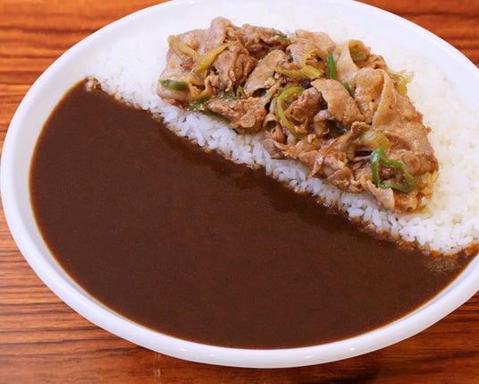 商品概要:肉・ルウ・米の全部盛り!三位一体めし!