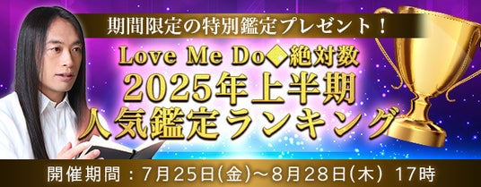 有名人の電撃婚や世界的なビッグニュースの予言を的中させて大人気の占い師Love Me Doの公式サイト「Love Me Do◆絶対数」では、『2025年上半期人気鑑定ランキングキャンペーン』を開催中です。