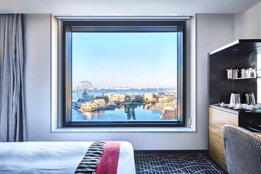 観覧車や、ベイブリッジなどみなとみらいの景色を一望できる「ベイビュー(海・観覧車側)ルーム」のお部屋