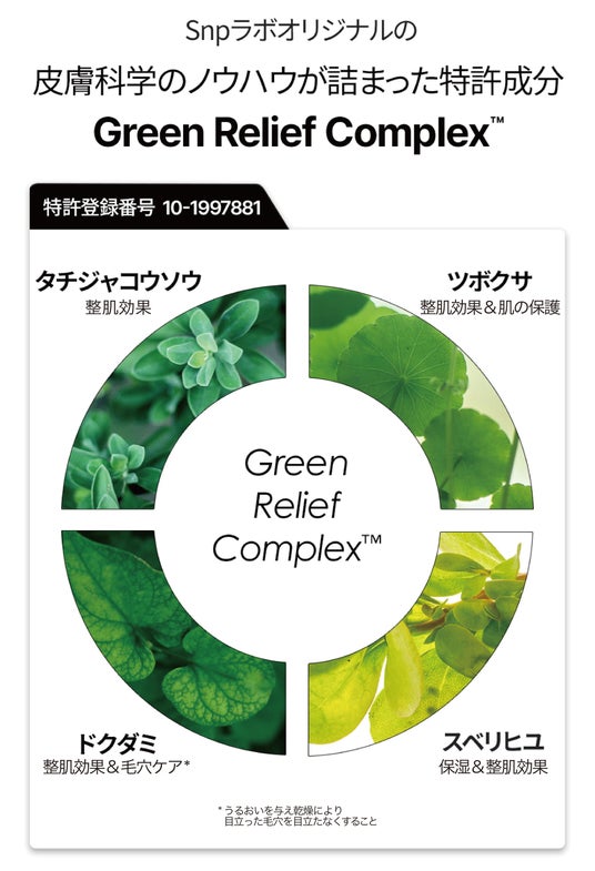 ●Snp独自の成分組み合わせ4種の植物エキスを独自の黄金比率で配合しており、肌の乾燥による肌荒れを防ぎます。