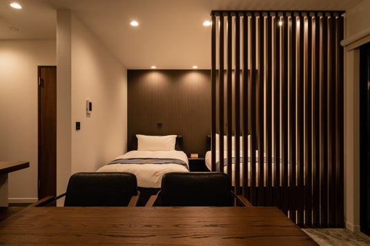 当施設は、お客様それぞれが完全プライベートでゆっくりとお過ごしいただけるよう、全部屋一棟貸しプライベートヴィラとなっております。富士吉田の街並みに溶け込むよう設計された、静かで落ち着いた空間で、バルコニーやルーフトップテラスからは目の前に広がる雄大な富士山を一望できます。