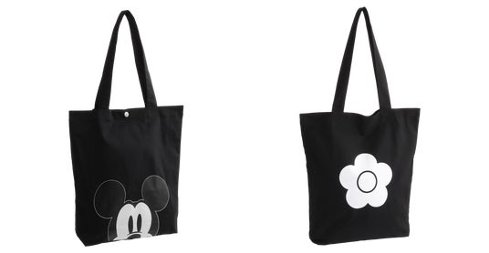ブラックやレッド、ホワイトなどのカラーを中心に、背面にディズニーデザイン、正面にデイジーがプリントされたTシャツや、ハートのハンドサインがポイントのトートバッグなど、マリークワントならではのここでしか出会えない心躍るラインナップ。