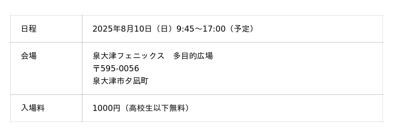 FoodFes株式会社(代表取締役:稲垣一馬)は2025年8月10日(日)大阪府泉大津市”泉大津フェニックス”にてFoodFesを開催します。